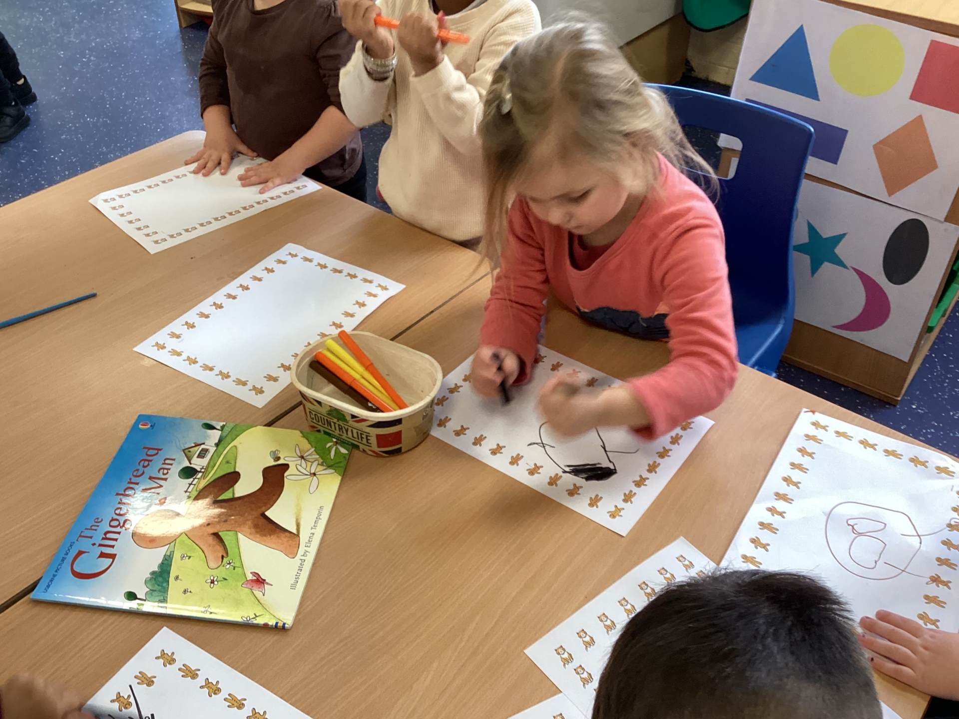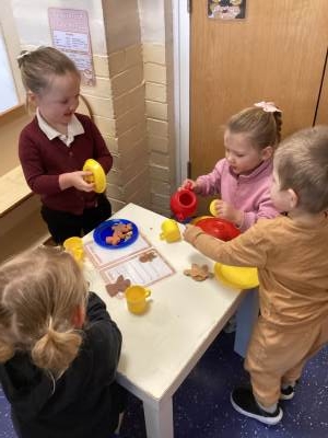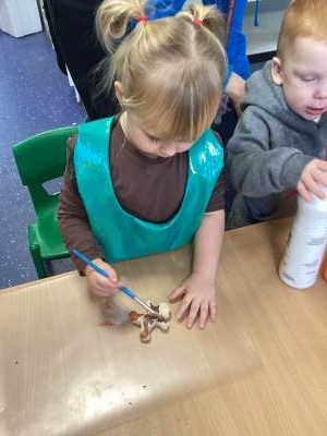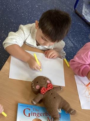 Nursery have been reading The Gingerbread Man and enjoying making their own salt dough gingerbread men, drawing and colouring and role playing in our Gingerbread Cafe.
